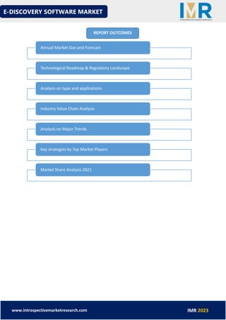 The global e-discovery software market was valued at USD 12.96 billion in 2021 and is projected to reach USD 32.03 billion by 2028, growing at a CAGR of 13.80%. This growth is driven by the increasing volume of electronically stored information as organizations adopt digitalization, particularly post-COVID-19. The report provides detailed market analysis, including segmentation by software, services, and end-users across multiple regions.