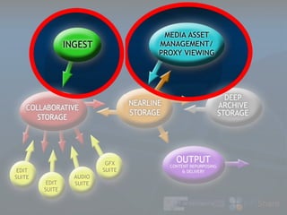 Editshare is a U.S.-based private company that specializes in collaborative storage servers and workflow software for the film and TV production sector, founded in 2004. Their offerings include ingest, media asset management, and archive solutions, with features like real-time editing compatibility across different operating systems and user-friendly administrative tools. Editshare emphasizes flexibility and cost-effectiveness, allowing facilities to share projects seamlessly without the need for expensive hardware or licenses.