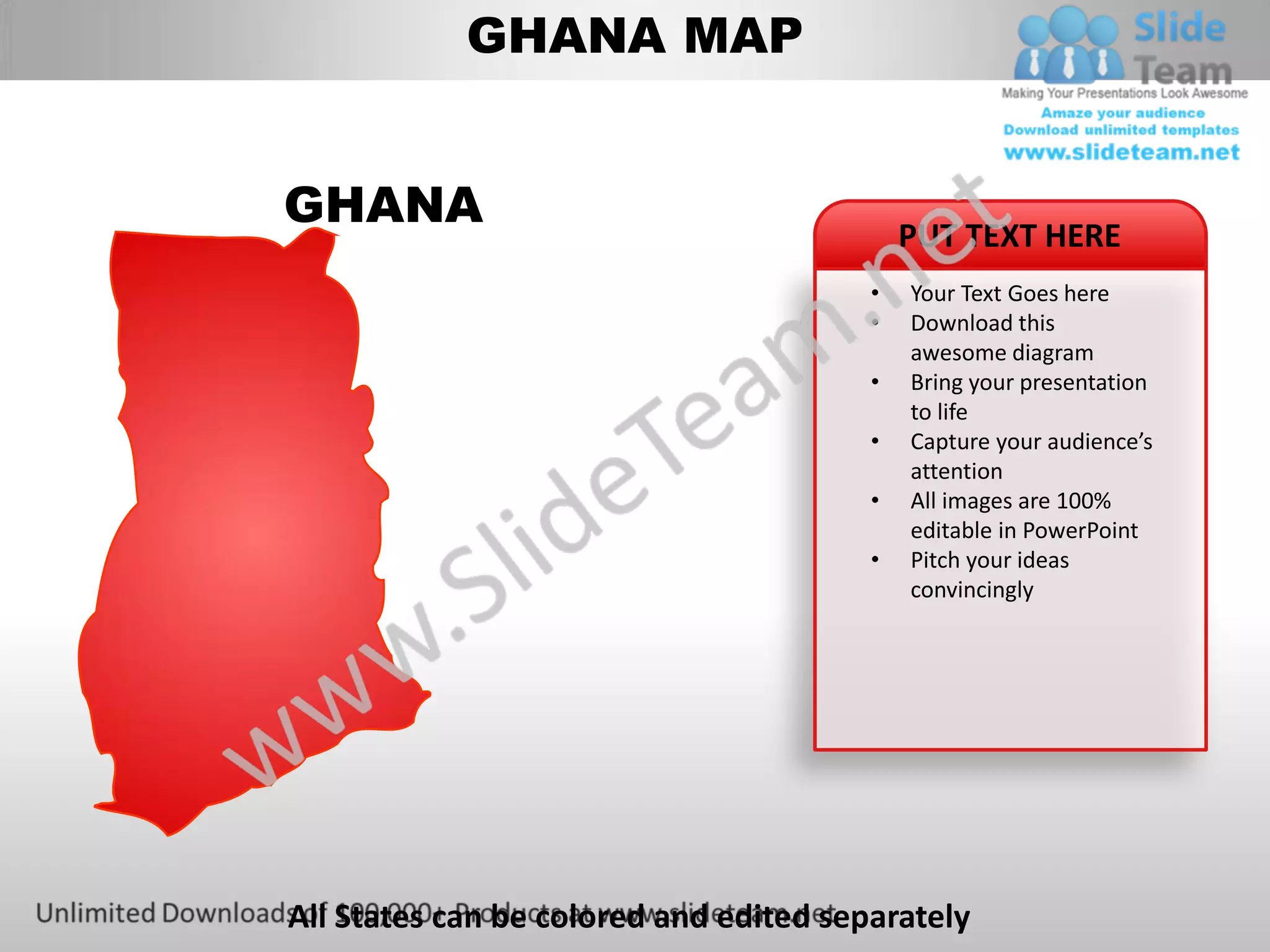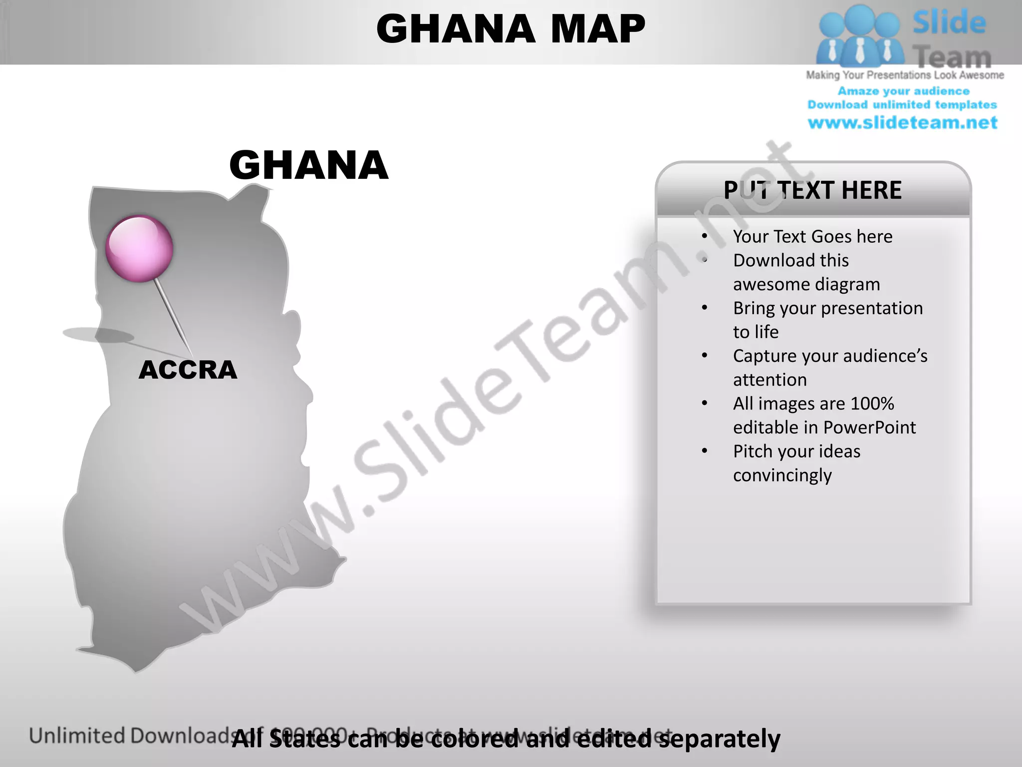 This document provides instructions for editing a Ghana map PowerPoint diagram. It describes how to: