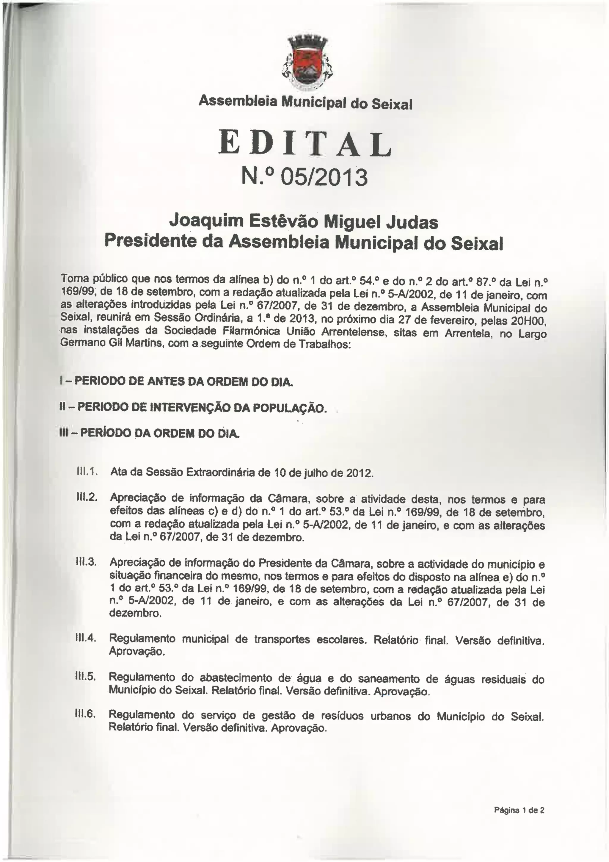 Ordem de trabalhos