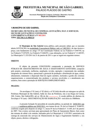 Edital concessao 1. PREFEITURA MUNICIPAL DE SÃO GABRIEL
