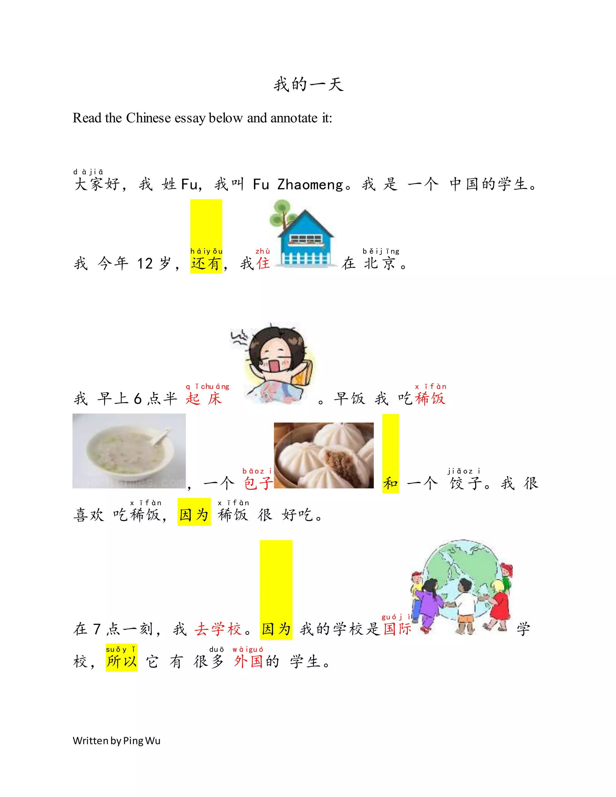 1. Color coding: red = verb phrases for daily schedules; yellow = cohesive device;