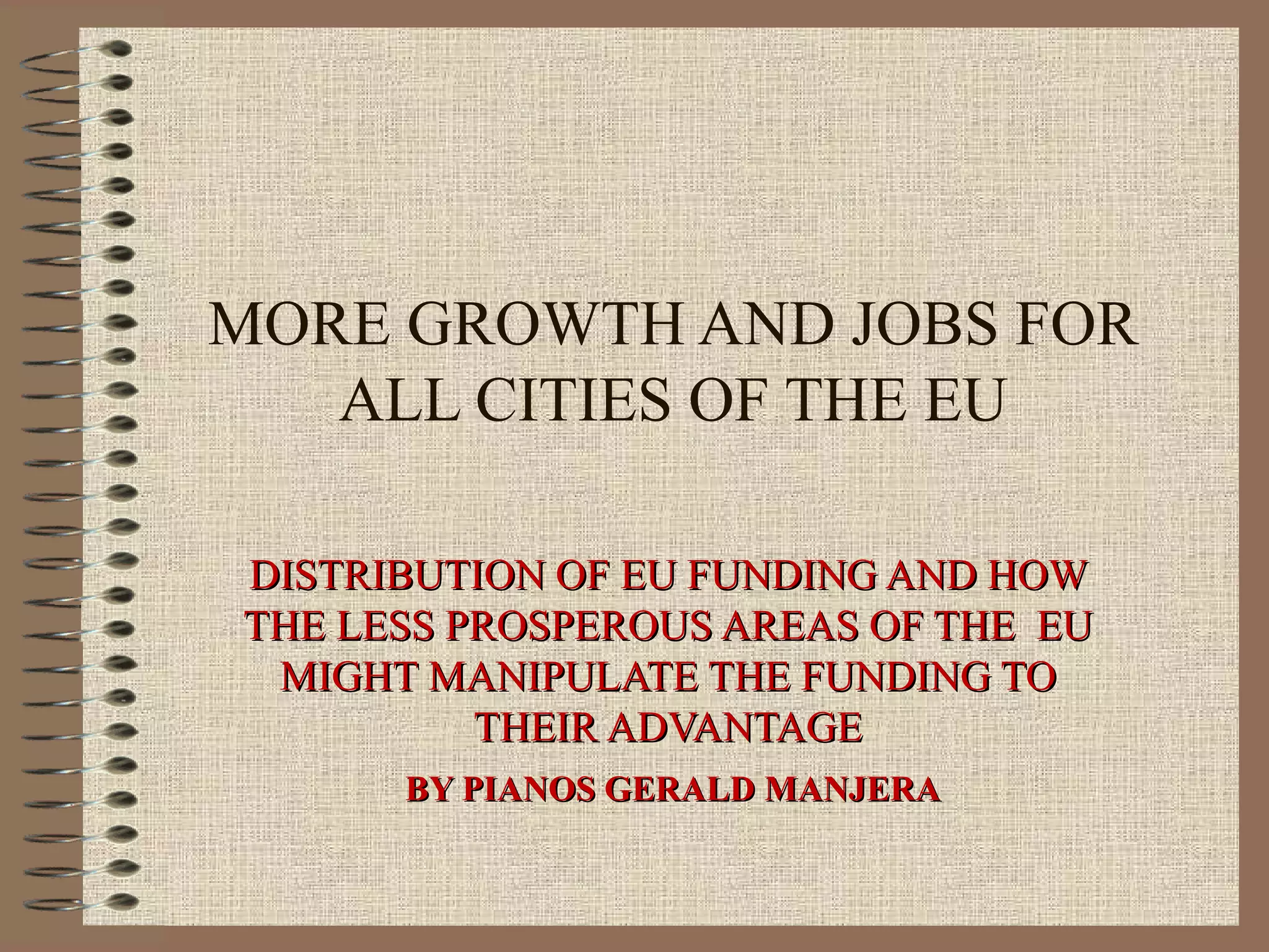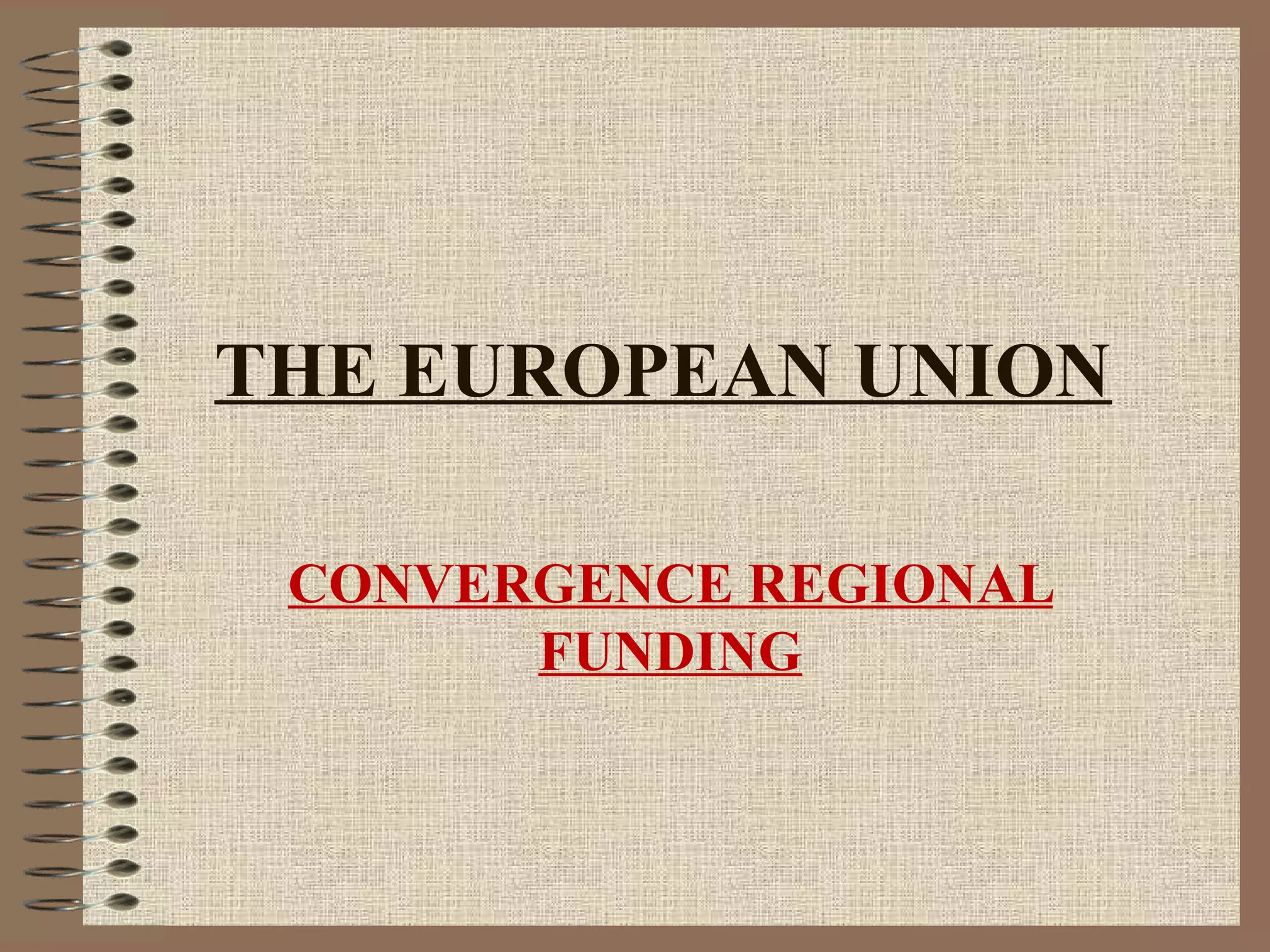 The EU convergence regional funding aims to transfer resources from rich to poor regions of the EU to promote solidarity and reduce economic and social disparities. Over time, the funds have been targeted to an increasing number of eligible regions, starting with the poorest and expanding to include others above the GDP threshold. Case studies of Ireland show that between 1989-1999, EU funding accounted for increases in Ireland's GDP and was invested in infrastructure, productive sectors, human resources and local development, contributing to Ireland's economic growth. Evaluations find that EU cohesion policy and coordination of regional policies can improve national policies and reduce barriers to integration.