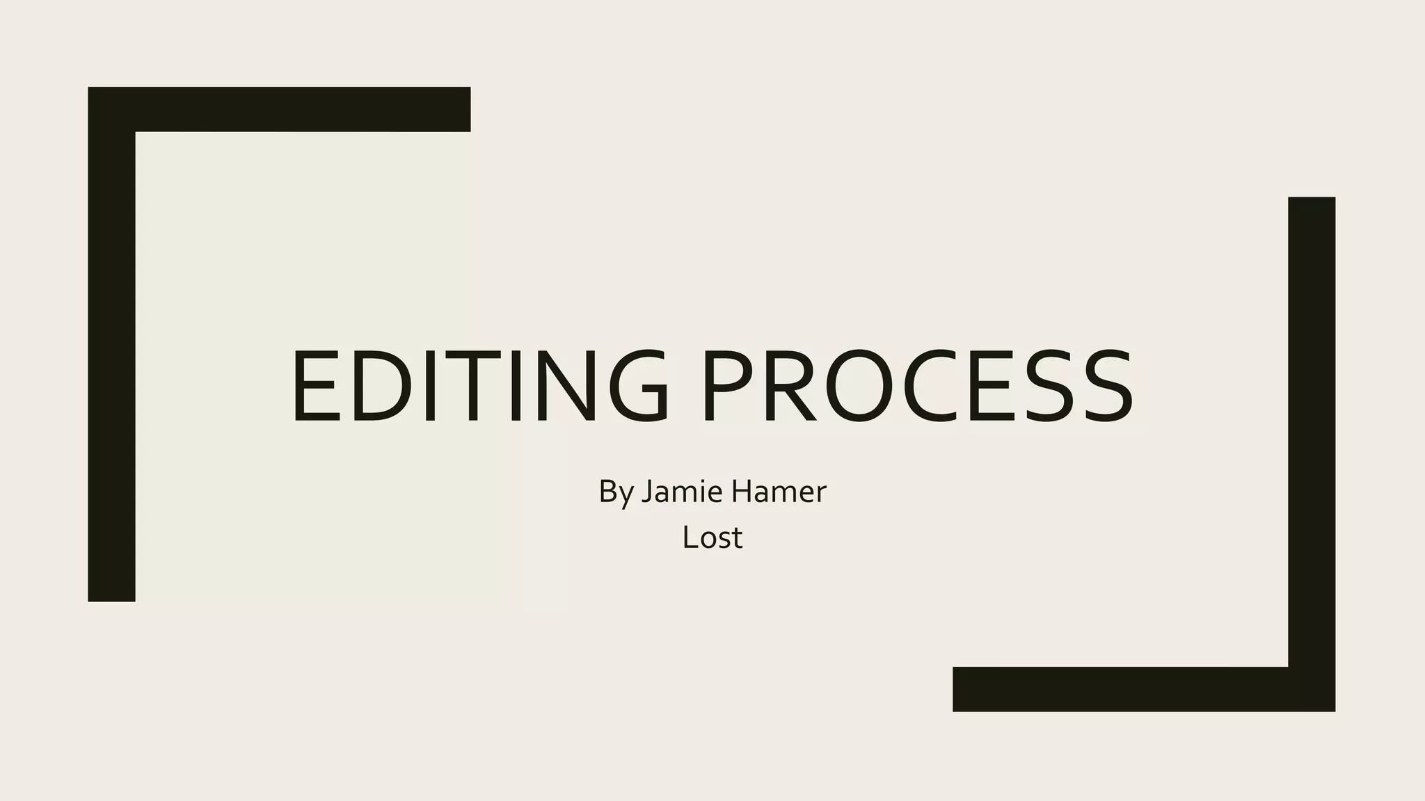 Jamie Hamer describes their editing process for a film project called "Lost" in Adobe Premiere Pro. The process involved renaming film clips for organization, placing clips in the correct order, editing clip lengths and removing background noise, adding transitions between clips to improve flow, adding background music from Bensound to make parts more tense, and including opening and closing credits with director and actor names to look professional. The last steps were rendering the completed film and exporting it to be viewed outside of Premiere Pro on YouTube.