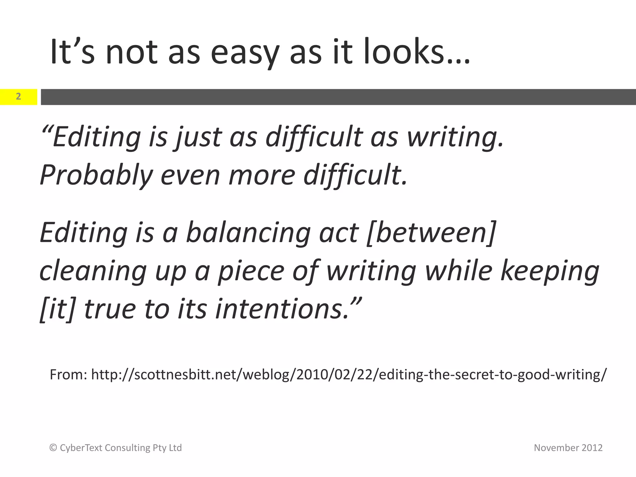 The document discusses the intricacies of editing, emphasizing its significance in refining written content while maintaining its original intent. It covers the various types of editing, the roles of editors, and the importance of clarity, consistency, and conciseness in communication. Additionally, it provides practical tips, tools, and resources for effective editing across different types of documents.