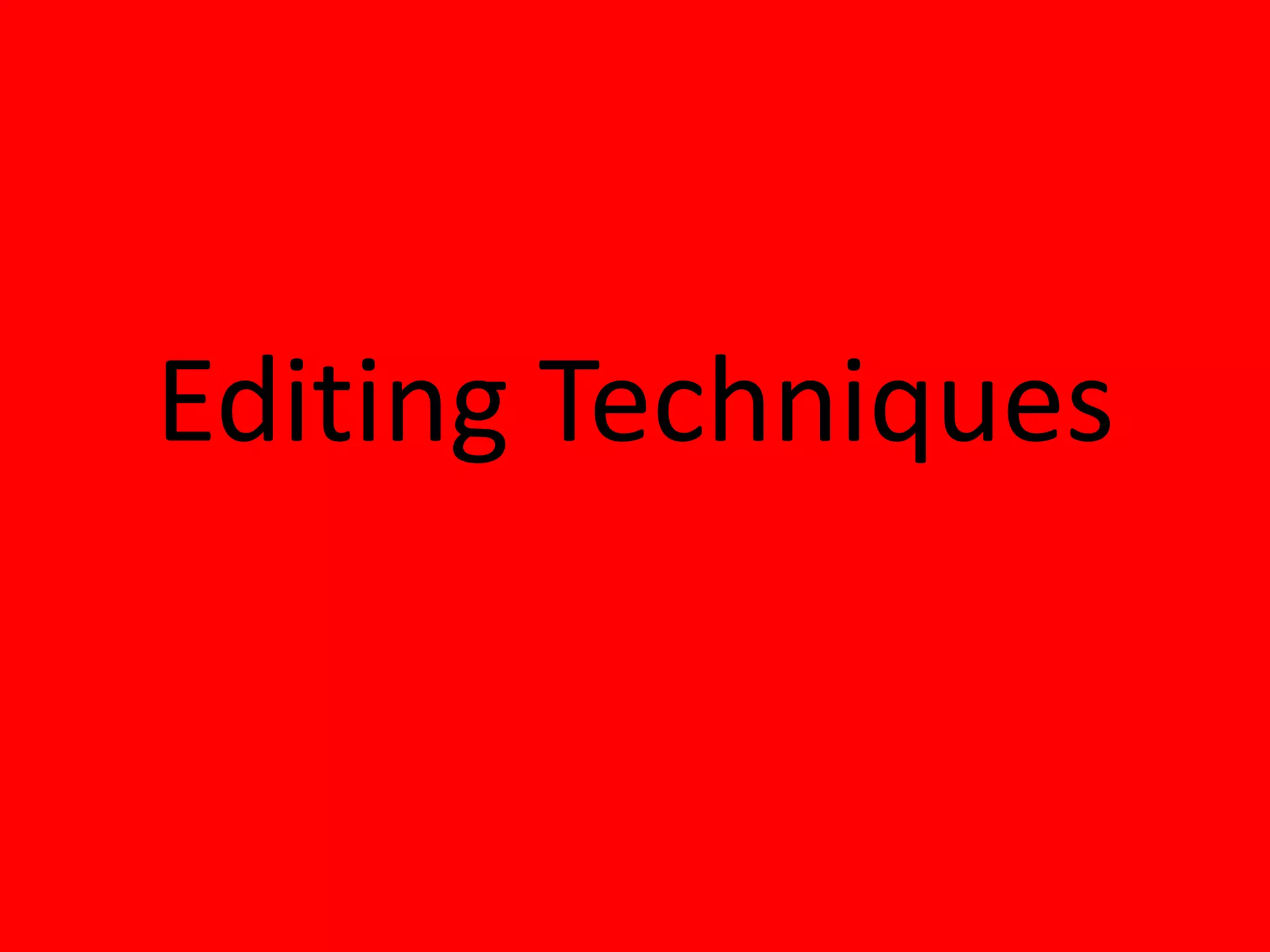 This document defines and describes various film editing techniques: