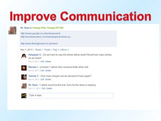 Pupils are using the Edmodo platform daily to complete tasks set by teachers, write freely about various topics, and look forward to the comments and feedback they receive from both teachers and classmates. The platform allows for educational collaboration and communication within class and school groups while maintaining safety by only allowing messaging between students in the same year group and preventing contact from outside users.