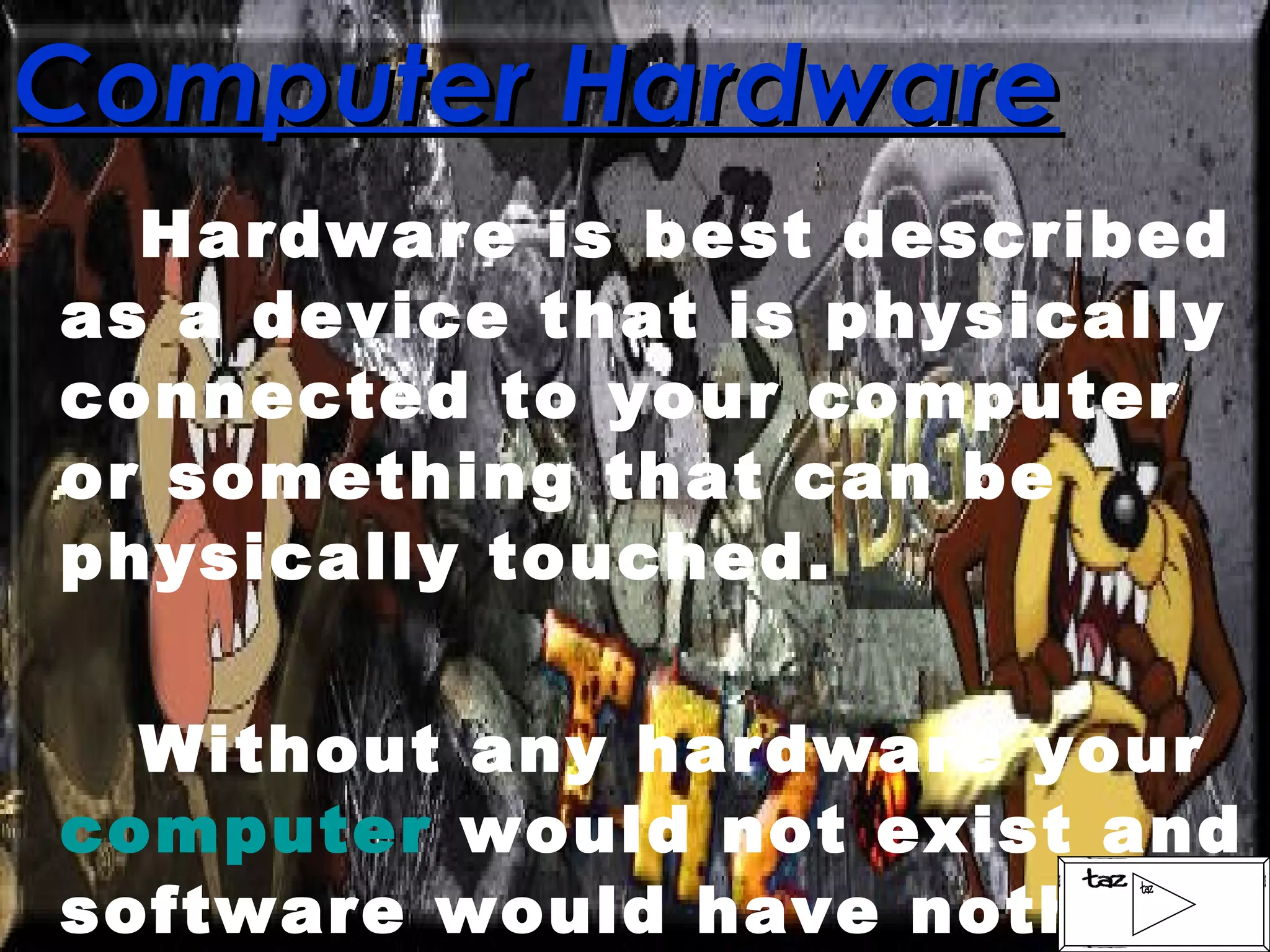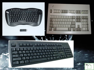 Computer hardware includes input devices, output devices, and storage devices. Input devices such as mice, keyboards, and webcams allow users to input data. Output devices like monitors, printers, and speakers allow the computer to output information to the user. Storage devices such as USB drives and diskettes are used to store data on the computer.