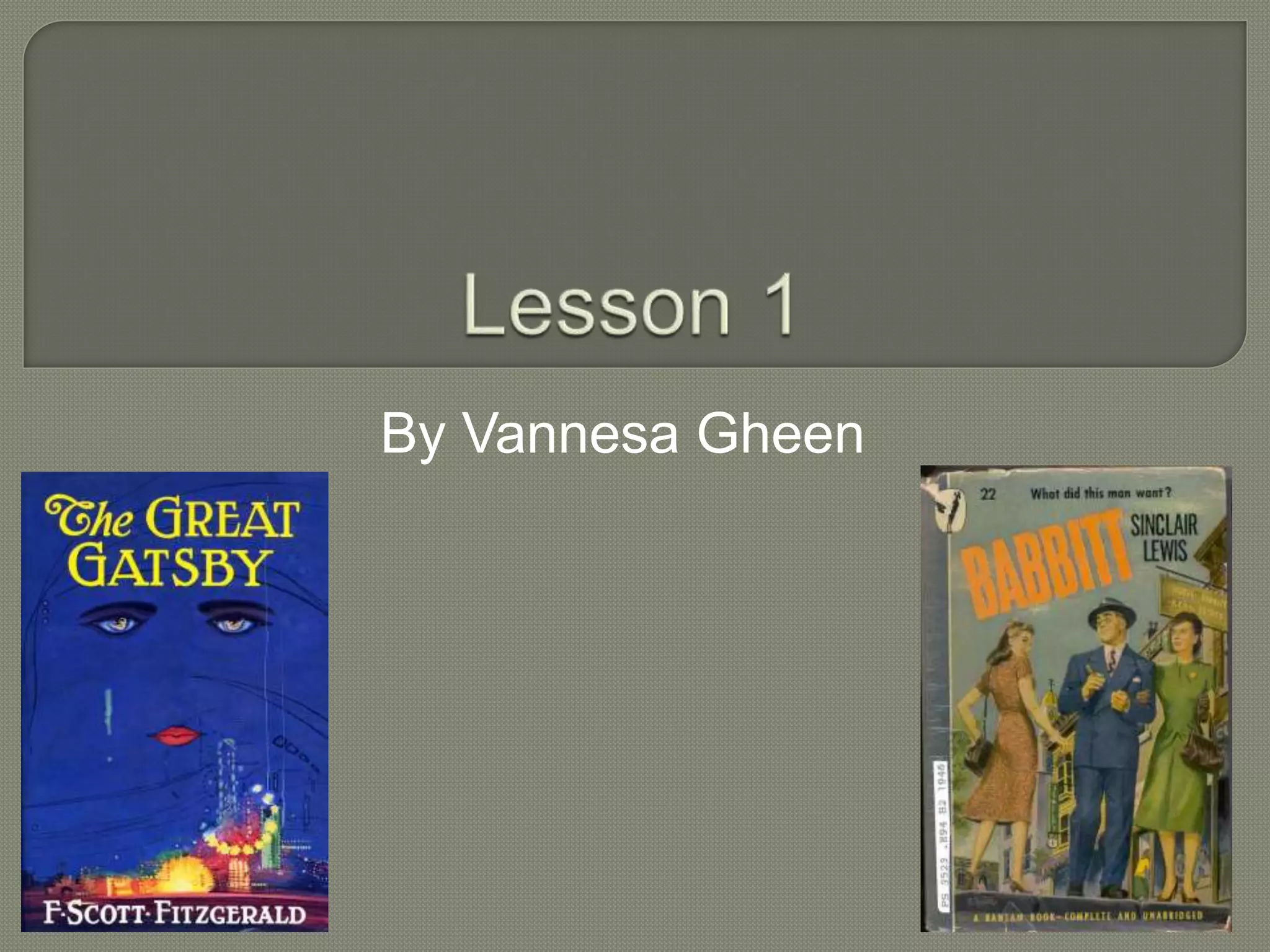 The document outlines a classroom activity comparing the novels 'The Great Gatsby' and 'Babbitt', focusing on themes, narrative perspective, and character endings. Students are tasked with creating two lists of themes—common themes and unique themes—and must find supporting evidence from the texts and secondary sources. An essay on these themes is due in two weeks, and students are encouraged to safely use educational resources for their research.