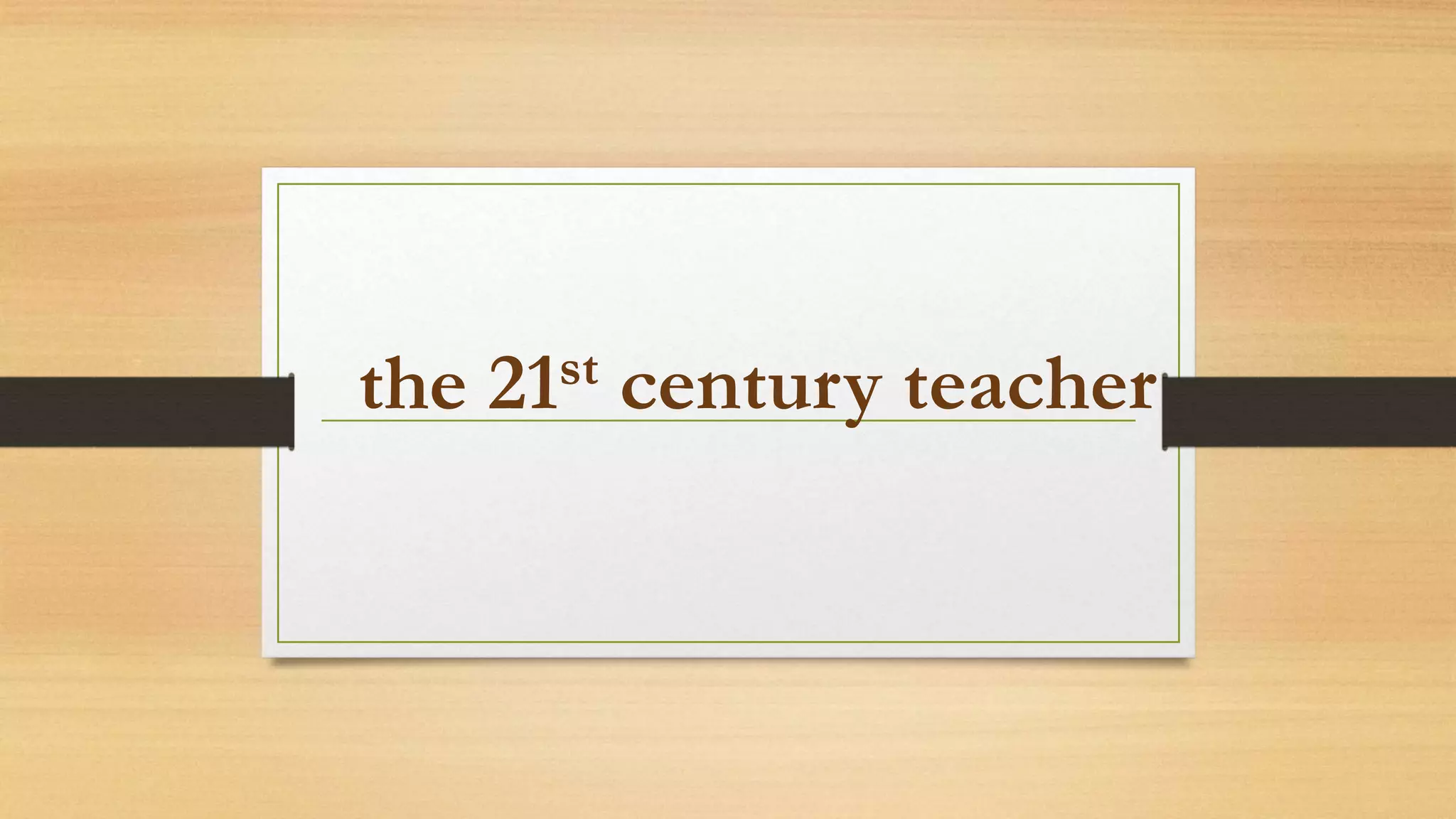 The document outlines the key characteristics of a 21st century teacher. It discusses how 21st century teachers must be adaptable to changing technologies and learning styles, take on visionary and collaborative roles to enhance learning, and act as risk-taking learners themselves. Above all, 21st century teachers model lifelong learning and lead students through facilitation and reflection on 21st century skills.