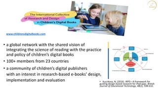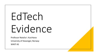 The document discusses the integration of evidence-based research into educational technology (edtech) to enhance children's learning experiences. It highlights the importance of collaboration among educators, designers, and researchers in developing effective edtech solutions, while also addressing issues like equity, accessibility, and the need for a scientific approach in edtech design. Key concepts include various types of evidence, the role of sensory learning, and the efforts to ensure that no child is left behind in the educational landscape.