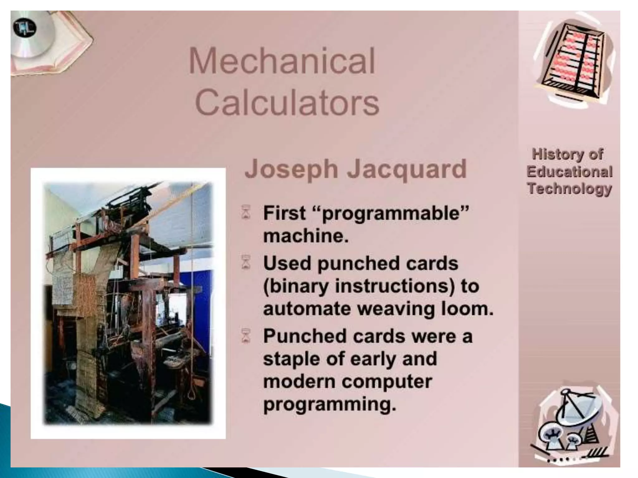 hardware, or devices: slide projector, television, radio film, camera,
