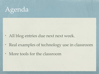 This document provides an agenda and resources for an education technology session. It includes: