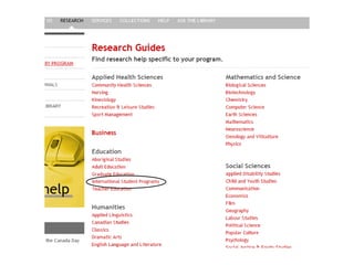 The document provides an introduction to library resources and services for education students at James A. Gibson Library. It summarizes key services like My Library Account, laptop loans, photocopying, RACER, and RefWorks. It also outlines library resources like the catalogue for books, databases for journal articles, and the research guide. The goals are to help students understand how to access and use these services and resources for their education papers and projects.