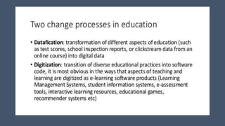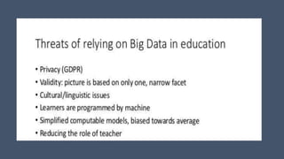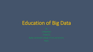 This short document discusses education and big data. It was written by C.Rajeswari, who is pursuing an II-MSc(IT) degree from Nadar saraswathi college of arts and science in Theni. The author thanks the reader for their time.