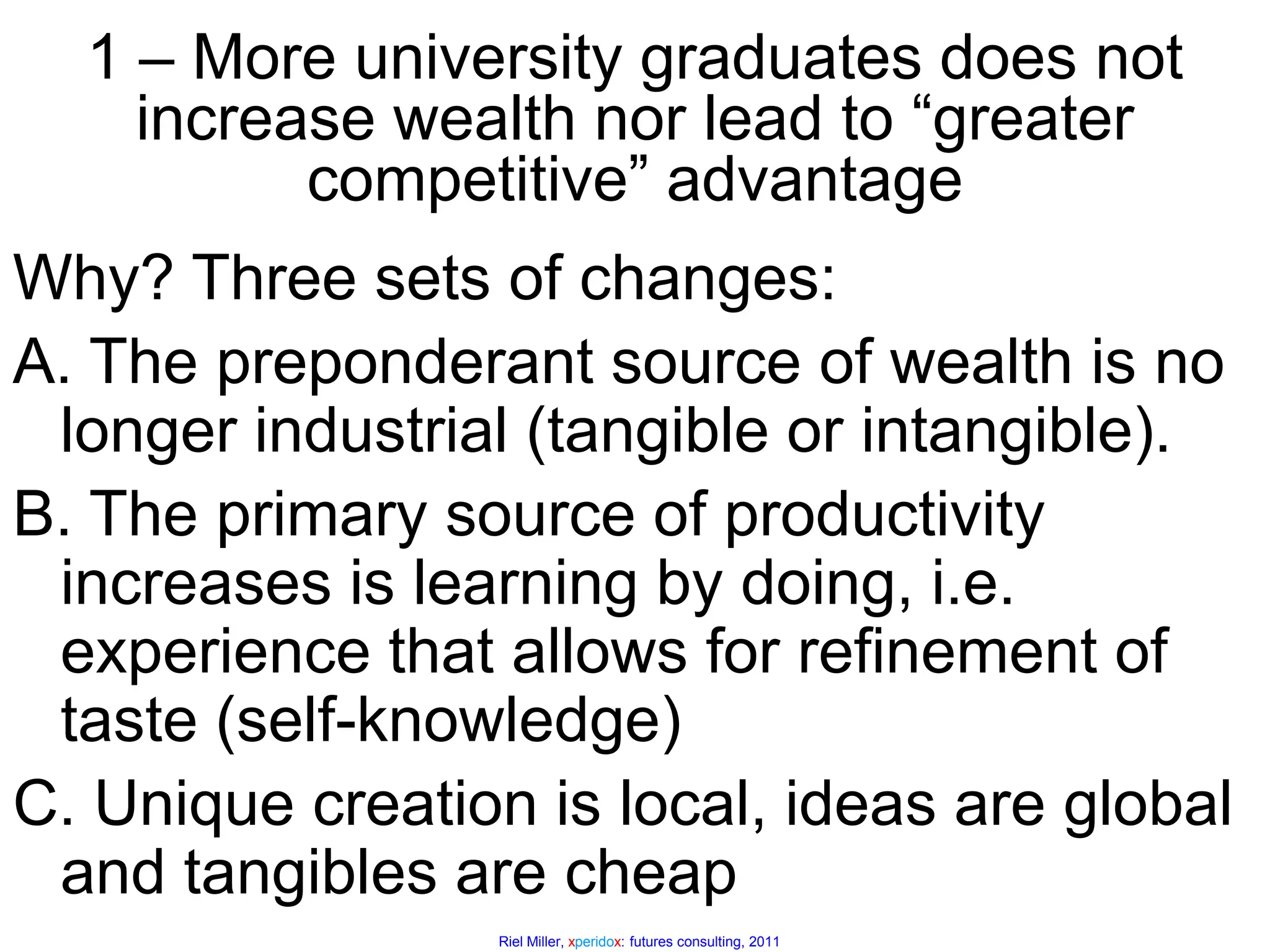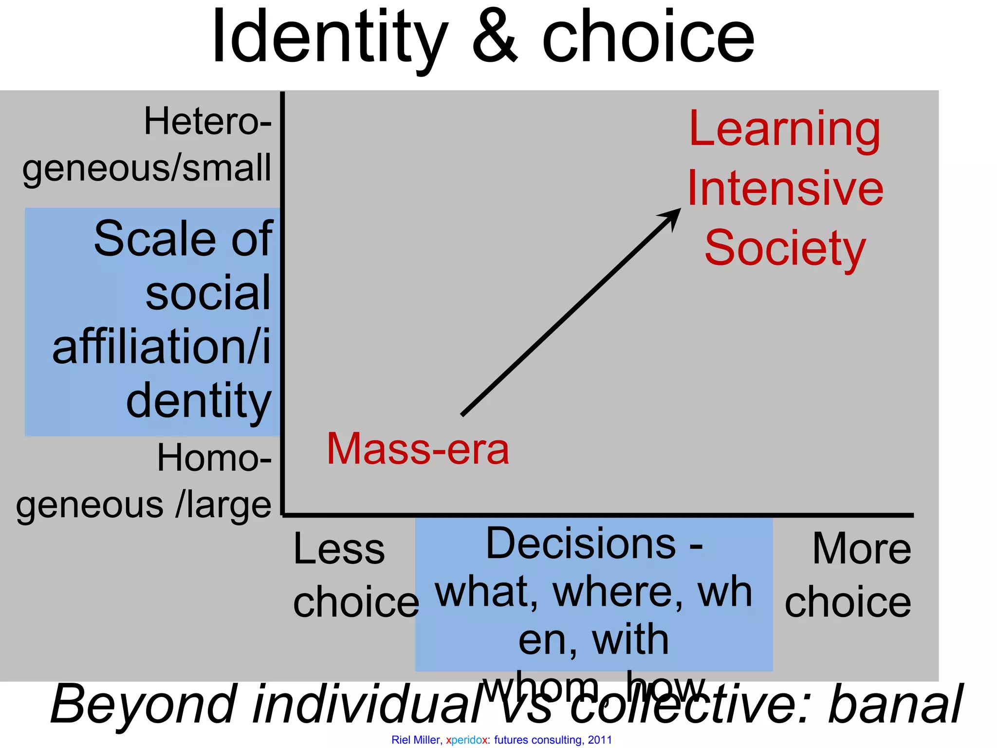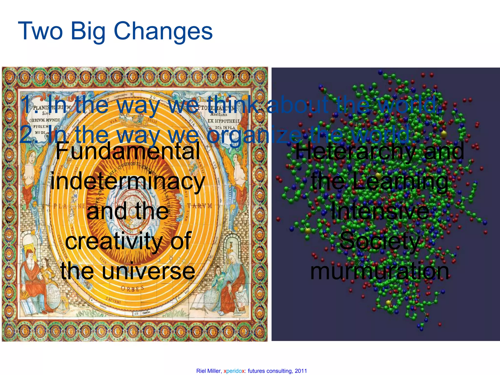 The document discusses the changing landscape of education and society, emphasizing the need for 'futures literacy' to effectively navigate complexity and uncertainty. It highlights the importance of embracing multiplicity in thinking and decision-making, as well as the shift from industrial-focused productivity to a learning-intensive society. The author advocates for experimenting and creatively adapting to new conditions rather than relying on deterministic approaches, suggesting that a futures literate society can better handle transformational changes.