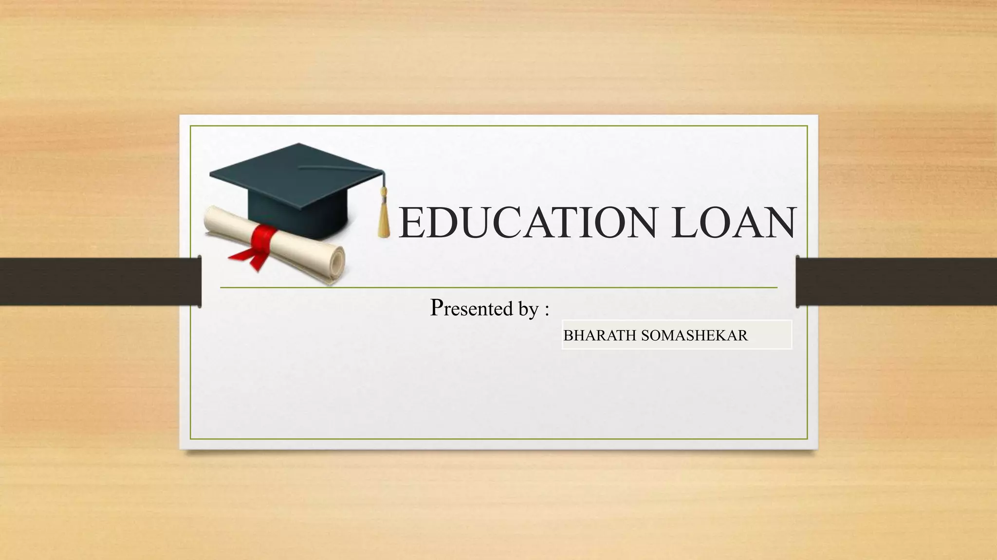 This document provides information about an education loan offered by SBI. It details the eligibility requirements, courses covered, expenses covered, loan amounts, interest rates and required documents. Students pursuing higher education in India or abroad can receive loans up to Rs. 10 lacs or Rs. 30 lacs respectively. Interest rates start from 8.45% and loan repayment begins 1 year after course completion over 15 years. Documentation includes proof of identity, residence, income, admission and academic records.