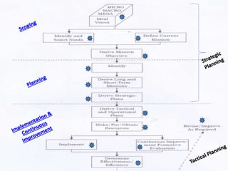 The document outlines various educational planning models, detailing the processes and steps involved in effective planning, including situational analysis, goal-setting, policy development, program prioritization, budgeting, implementation, and evaluation. It introduces models like Bell's, Herman's, Kaufman's, and Franco's, each providing frameworks for strategic, tactical, and operational planning in educational contexts. Emphasis is placed on continuous improvement and adaptation to both internal and external environments to achieve desired educational outcomes.