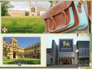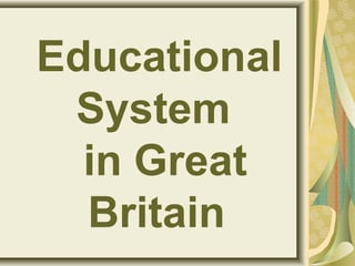 Children's education in England is divided into primary school from ages 5 to 11 and secondary school from ages 11 to 16 or 18. Primary schools focus on core subjects and keep children with the same classmates and teacher throughout the day. Most children then transfer to their nearest secondary school at age 11, where they can choose between grammar, technical, modern, or comprehensive schools depending on their academic interests. While 90% of children attend state schools funded by taxes, 7% attend private schools that are funded through school fees paid by parents.