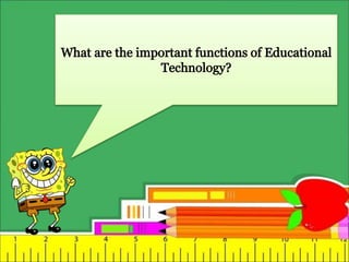 - Educational technology aims to analyze the teaching and learning process thoroughly and help improve methods and techniques for instructors. It also helps students become more globally competitive by providing new ways to access information and build skills.