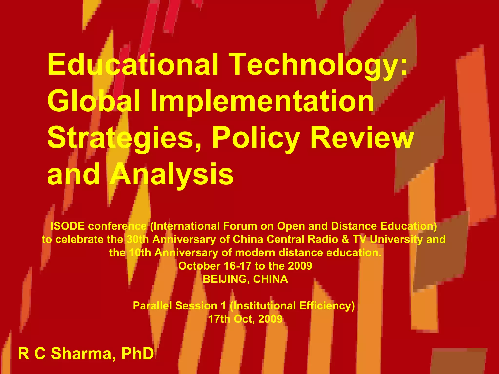 The document discusses the implementation and policies of educational technology globally, highlighting its evolution from ancient methods to modern digital tools. It reviews various national strategies from countries such as Canada, Argentina, Japan, China, Australia, New Zealand, and Finland, emphasizing their approaches to integrating technology in education. The impact of educational technology on curriculum development, student engagement, and professional staff development is examined, advocating for a focus on pedagogy and innovative practices.