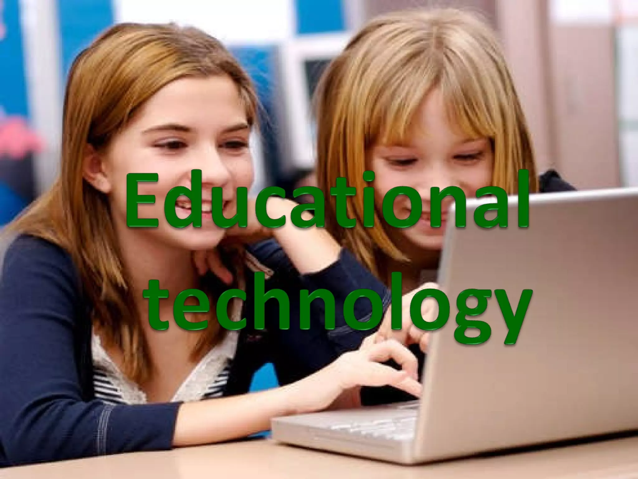Educational technology is the study and ethical practice of facilitating learning through the use of technology. It draws from several fields including instructional technology and is based on learning theories like behaviorism, cognitivism, and constructivism. Benefits include easy access to materials, increased student motivation, and the ability to reach wider audiences. However, there are also criticisms like a lack of proper training and limited access. Common tools in classrooms include websites, blogs, wikis, and interactive whiteboards.