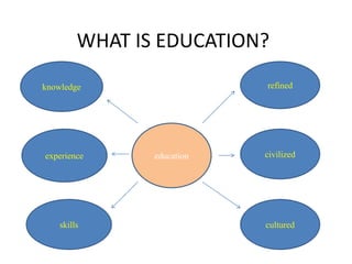 Education is a product that results from the process of learning. The input is the effort of students, the process involves growth, development and experiences through learning, and the output is a change in behavior and the acquisition of knowledge, skills, and a positive attitude. Education takes people lacking knowledge as an input, applies educational courses and skills training as the process, and produces an educated or skilled person as the output, such as a degree from a university or college. Improving the educational process can lead to a better product in the form of social benefits like an literate population, career success, and technical advancement, as well as material benefits like innovations, access to technology, and improved lifestyle.