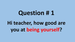 This document contains 14 questions related to teaching best practices. It provides various links to online resources under each question that provide further information and inspiration on topics like: questioning students effectively; listening to students; using social media in the classroom; connecting with and motivating students; giving students freedom and choices in their learning; inspiring and challenging students; helping students provide feedback; and continuing one's own learning and professional development. The overall focus is on student-centered teaching approaches.