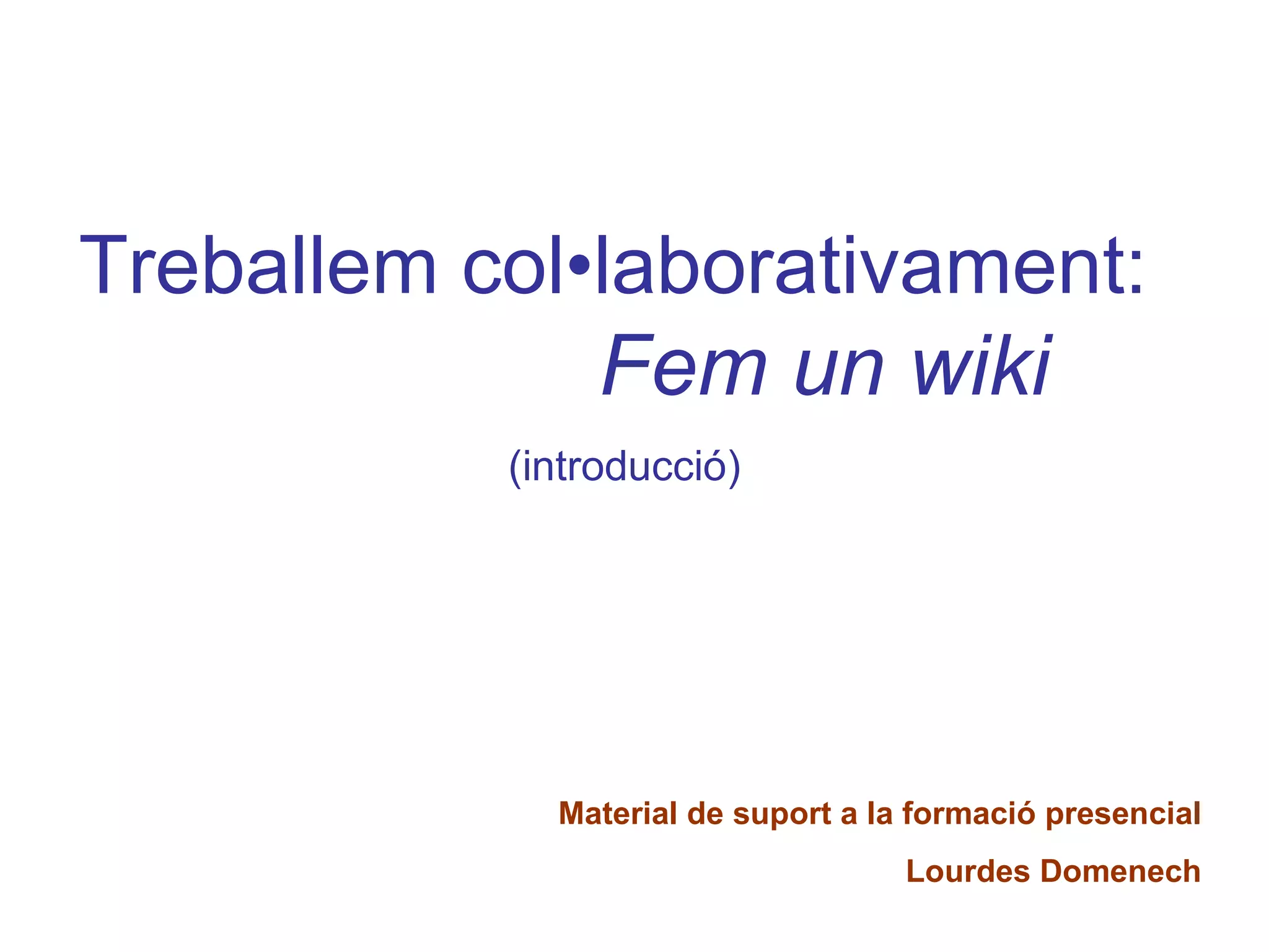 Wikis i eduwikis Un wiki és un lloc web col·laboratiu. Un wiki educatiu o eduwiki és un lloc web col·laboratiu amb finalitats educatives . Els wikis permeten… Gestionar la informació. Interactuar alumnat-professorat. Afavorir la comunicació i la participació. Socialitzar la informació. Fer-la més accessible.