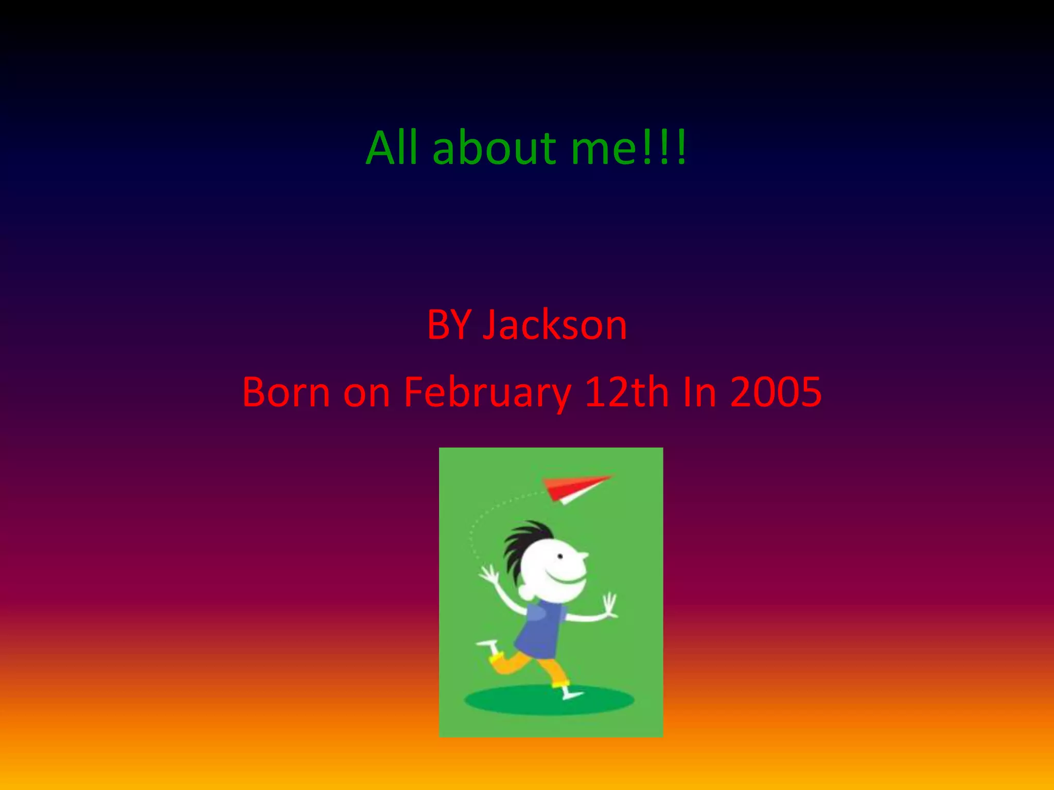 Jackson was born on February 12, 2005. His favorite school subject is science because he enjoys experiments and finds science fun and awesome. His favorite TV series is My Weird School which he has read many books from and likes the characters. Jackson's favorite sport is hockey which he plays all the time and finds awesome. His favorite food is baked potato which he enjoys topping with sour cream, cheese, butter, salt, and pepper. Jackson's favorite animal is the cheetah because they are really fast and have cool spots.