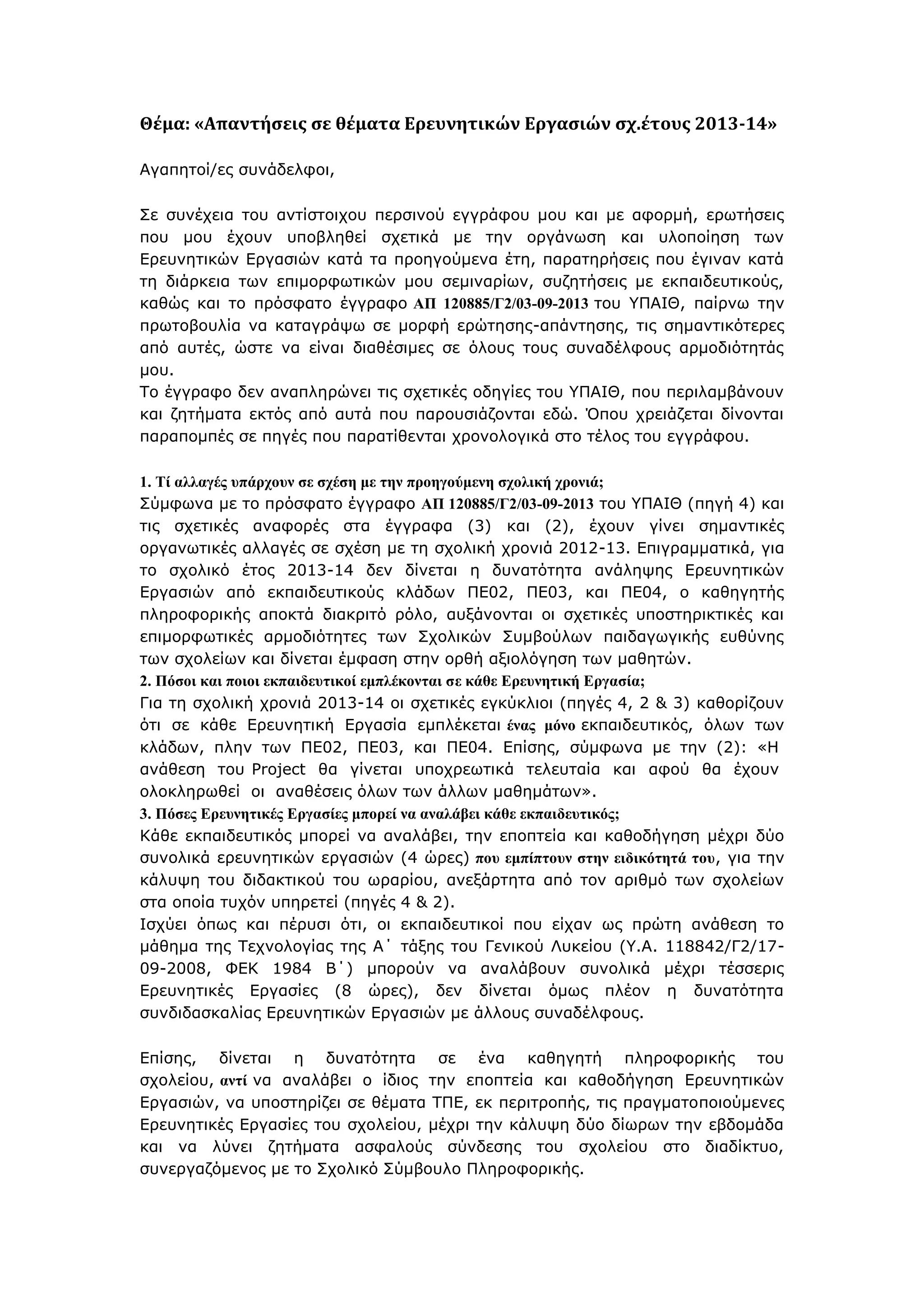 ζρ.έηνο 2013-2014» έγγξαθν ηνπ ΥΠΑΙΘ αξ. πξση 120885/Γ2/03-09-2013