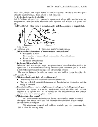 The document provides information about high voltage engineering. It discusses various topics related to over voltages in electrical power systems and dielectric breakdown.
