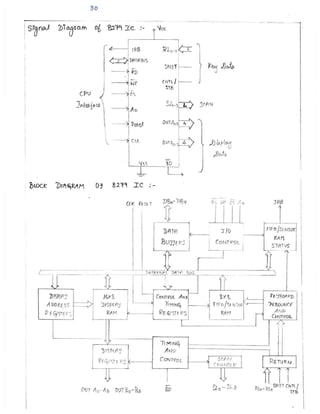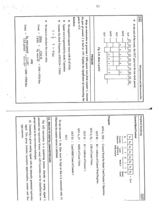 The document discusses the architecture and features of the Intel 8085 microprocessor. It can address up to 64KB of memory using its 16-bit address bus. It has an 8-bit arithmetic logic unit (ALU) and six 8-bit general purpose registers that can be combined into register pairs. The control unit provides timing and control signals. The 8085 has interrupt capabilities and can perform serial I/O communication. It requires a single +5V power supply and operates at speeds up to 3MHz.