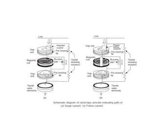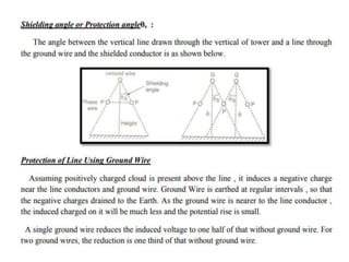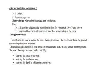 The document discusses high voltage engineering, particularly focusing on overvoltages in electrical power systems, their causes, and effects. It details various types of overvoltages such as external (lightning) and internal (switching surges), their mechanisms, and the characteristics of lightning strokes. Additionally, it highlights methods for reducing overvoltages, including the use of ground wires and surge protective devices.