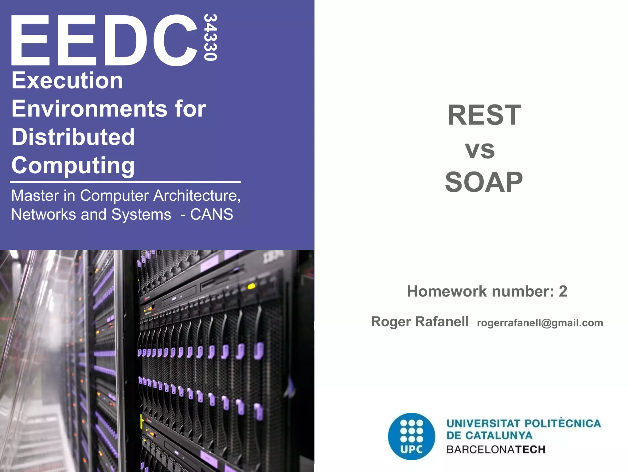 The document compares REST and SOAP architectures for distributed computing. It defines REST as a web services style based on HTTP that designs operations on data, while SOAP is a protocol for exchanging structured information that offers application logic as a service. The document then outlines key differences, with REST being more lightweight, flexible and oriented towards data, while SOAP focuses more on operations, security and reliability. It concludes by recommending REST unless specific needs require SOAP.