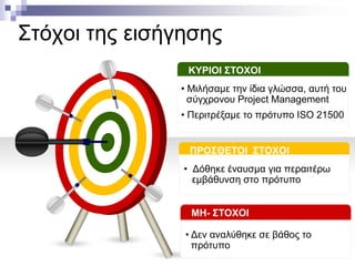 • Περιτρέξαμε το πρότυπο ISO 21500