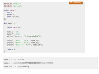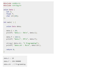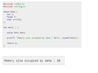 The document discusses functions in C programming. It defines functions as sub-programs that perform tasks when called. It describes pre-defined functions like sqrt(), abs(), pow() etc. and user-defined functions. User-defined functions are needed to break programs into modular pieces. Functions provide advantages like facilitating top-down programming and reusability. The document also discusses parameter passing methods like call by value and call by reference, and returning values from functions. Nesting and recursion of functions is explained with examples. Finally, it briefly discusses passing arrays and structures to functions.