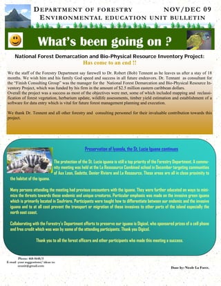 3) Efforts to educate communities and preserve the endangered Saint Lucia iguana, including a meeting in La Ressource.