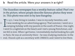 2. Without showing their worksheets, they write guesses for their partner's answers in a chart.