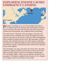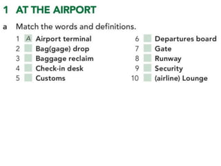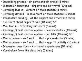 • Reading (1) Best seat on a plane – new vocabulary (10 mins)