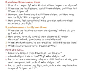 • Speaking practice – Personalised speaking -travel (10 mins)
