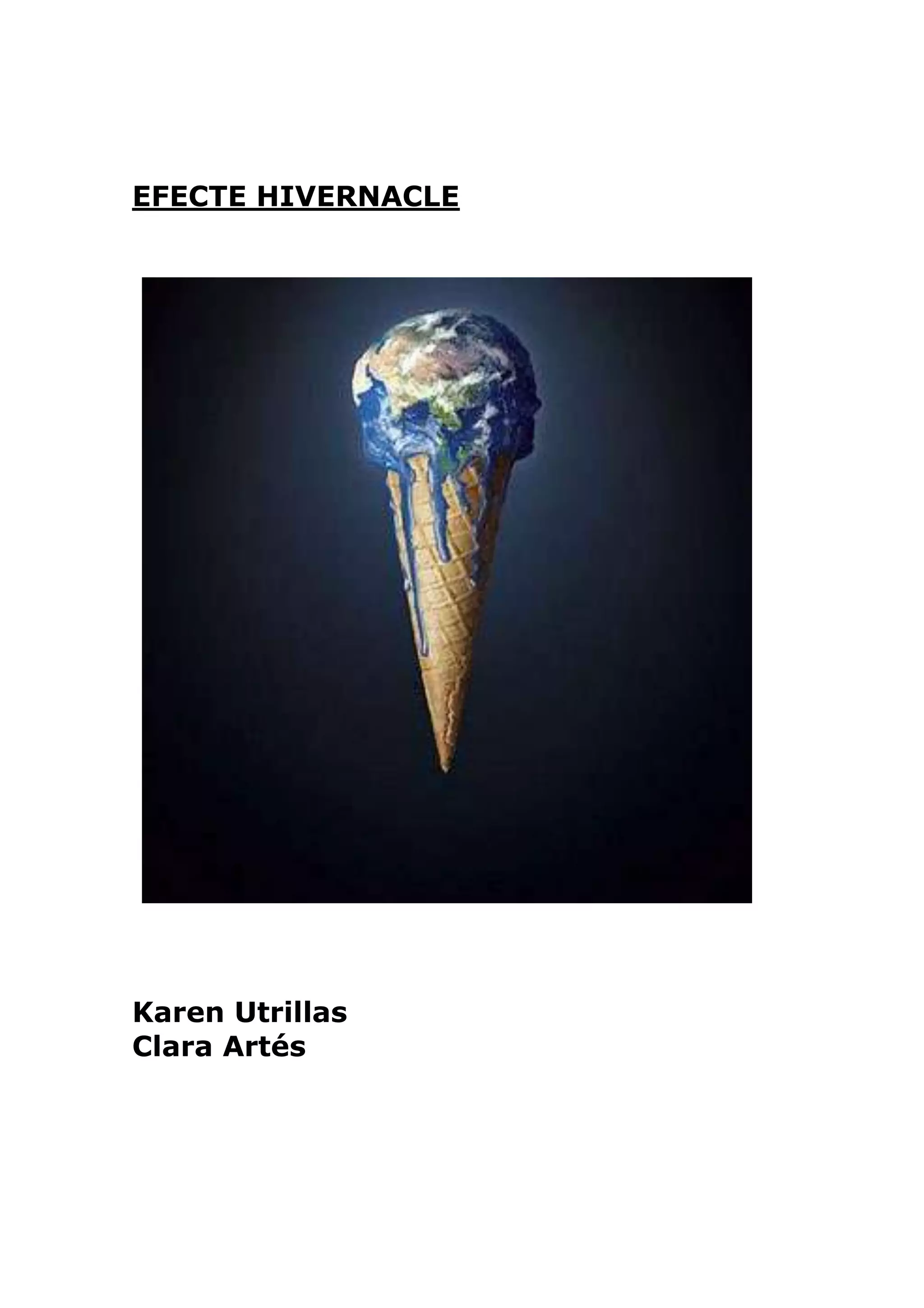EFECTE HIVERNACLE<br />81915257175<br/>Karen Utrillas<br />Clara Artés<br />QUÉ ÉS?<br /> És un fenómen causat pels gasos que hi ha a l’atmosfera , sobretot vapor d’aigua i CO2.<br />COM ES PRODUEIX?<br />Els gasos de l’efecte hivernacle permeten que entrin les radiacions solars,cosa que afecta la superficie de la Terra.A la vegada,es queda part del calor que transmet de la superficie amb radiacions infrarroges.Es manté així una temperatura d’aproximadament 15º.<br />Com a conseqüència d’aixó,una major quantitat d’energia calòrica solar és atrapada en l’atmosfera, aixo fa que la temperatura pugui augmentar respectivament per a sobre de la temperatura mitjana.<br />PROBLEMES DE L’EFECTE HIVERNACLE<br />La temperatura mitjana podria augmentar d’1 a 2,5º graus durant els pròxims 50 anys , cal dir també que en el proper mil·leni la temperatura podría augmentar d’1 a 3,5º. Si aixó pases provocaría un efecte desglaç i s’arribaria al punt que la terra mai ha arribat , el de augmentar considerablement la temperatura mitjana. <br />Les temperatures més altes enregistrades es troben entre els anys 1980 i 1995 on es van veure els 9 anys més calrorsos dels últims 100 anys.<br />CAUSES DE L’EFECTE HIVERNACLE<br />1 . Fa que els combustibles fossils es cremin.<br /> 2 . La deforestació, aixó fa que tot el CO2 que els vegetals fixin grans cantitas de CO2.<br />IMATGE DE L’EFECTE HIVERNACLE AMB EXPLICACIÓ<br />Efecto invernadero (Miller, 1991)<br />EXPLICACIÓ<br />La llum del sol entra a l’atmosfera escalfa la superfície de la terra.<br />La superfície de la terra expulsa el calor provocat per la radicació de la terra i va a punts buits o espais.<br />Donat que els gasos son tòxics o contenen CO2 part d’aquets poden ser expulsats però alguns es queden dins de l’atmosfera provocant efecte hivernacle.<br />Finalment es dona que la temperatura en general de la superfície de la terra puja . Provocat pels gasos i altres components Químics naturals.<br />Hem trobat aquest article proceden del \"