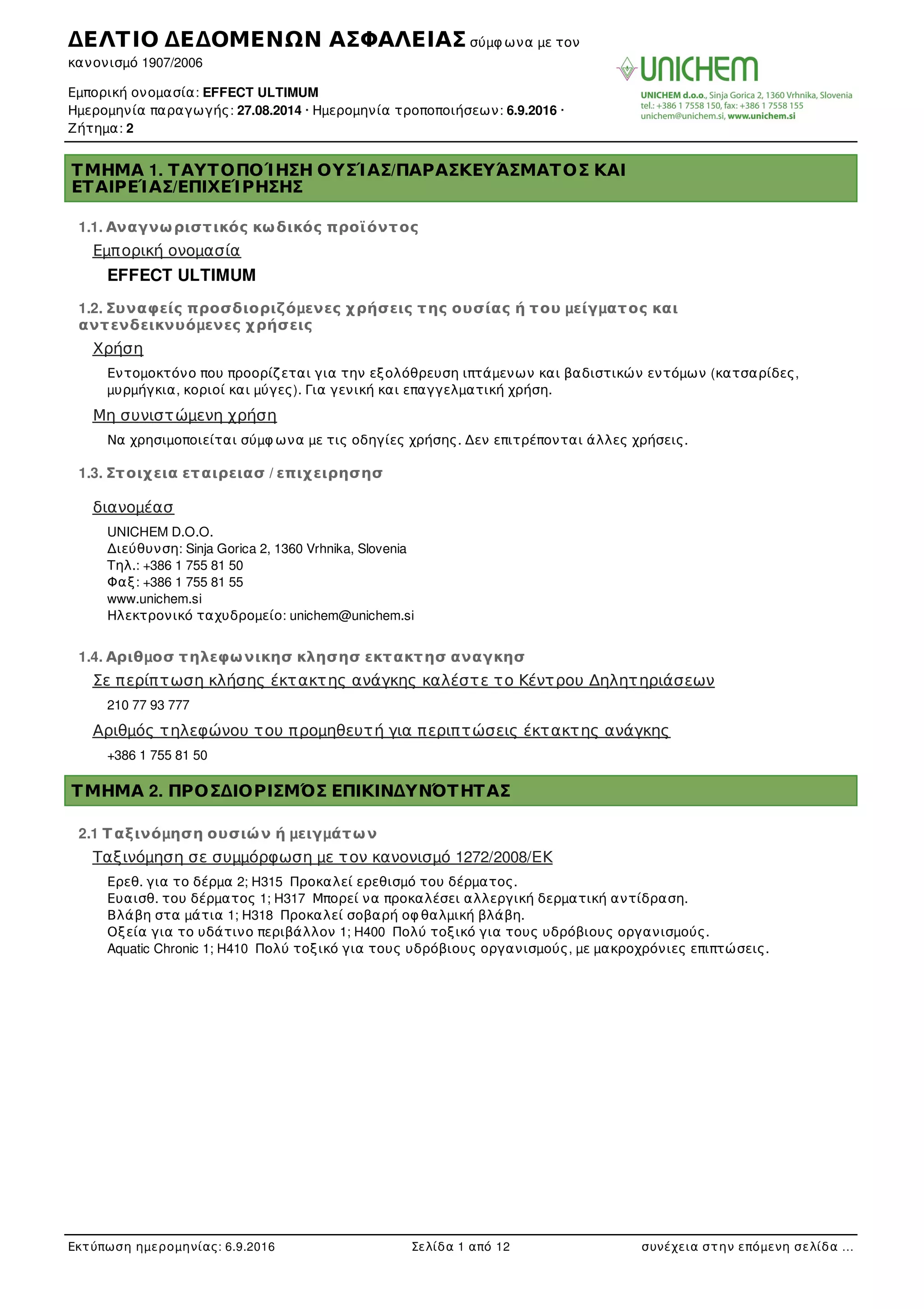 Εµπορική ονοµασία: EFFECT ULTIMUM