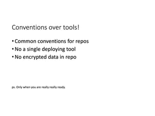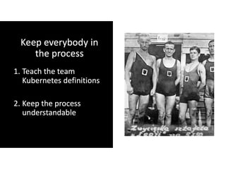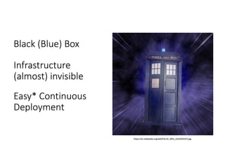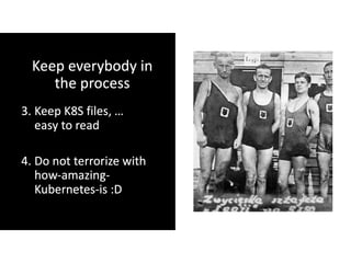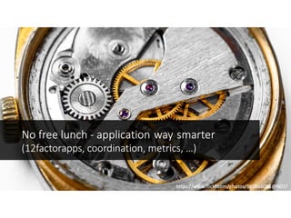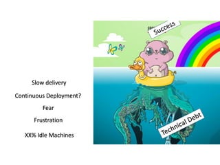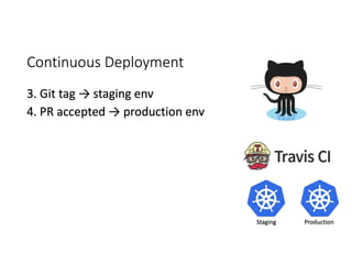 The document discusses effective platform building using Kubernetes, focusing on streamlining infrastructure and development practices. It emphasizes continuous deployment, the use of makefiles, and transitioning to microservices while addressing challenges faced during the integration process with legacy systems. Key technologies mentioned include Docker, Prometheus, Grafana, and various cloud services for scalability and management.
