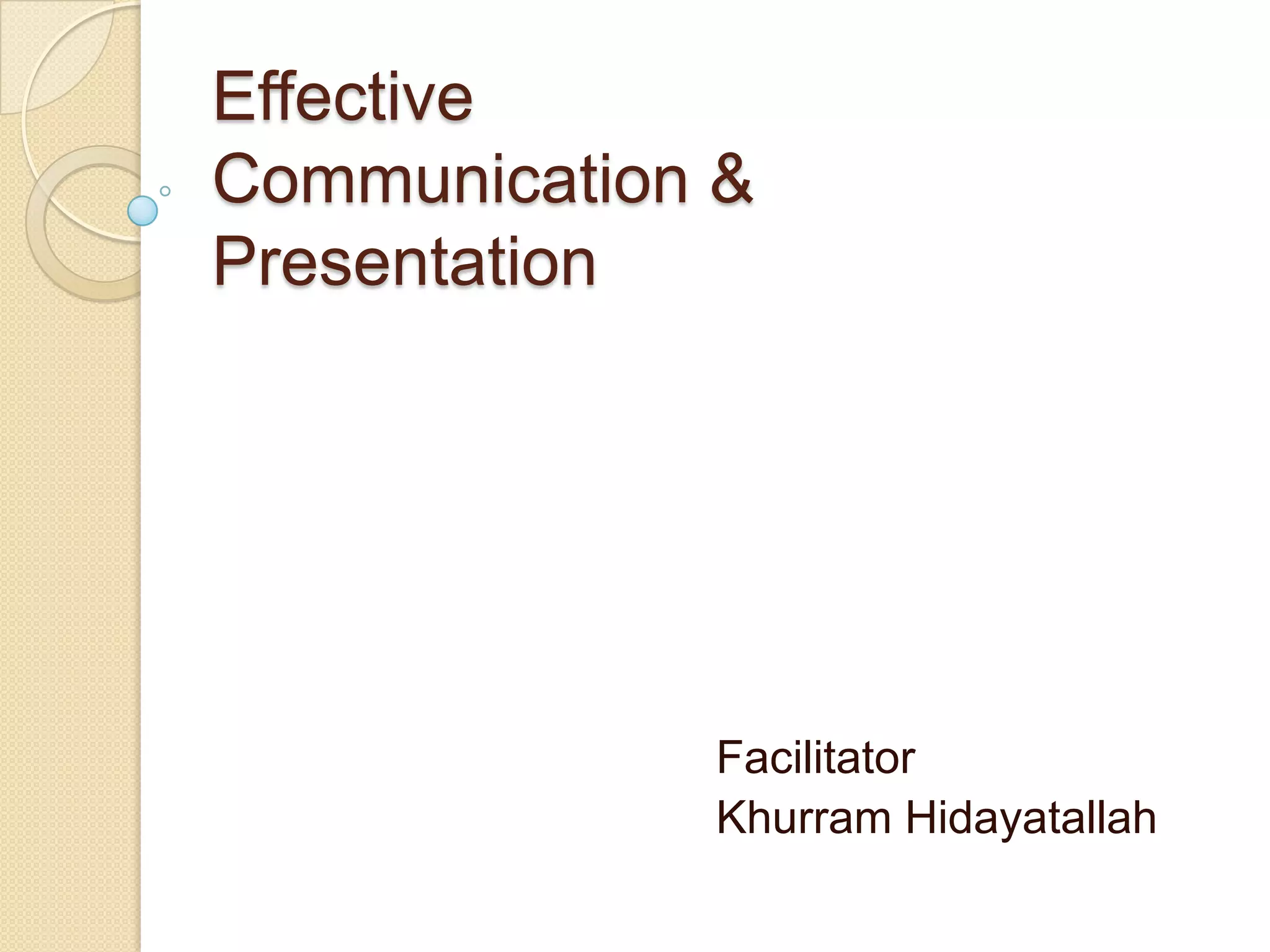 This document discusses effective communication and presentation. It defines communication and notes that it is effective when the desired response is received from the receiver. It then discusses elements of communication and effective presentation, including personal appearance, surroundings, postures, facial expressions, voice pitch, eye contact, presentation tools, speaker position, and avoiding obstructions. It stresses the importance of not losing the audience's attention and provides tips for decreasing stage fright such as knowing the subject well, rehearsing, arriving early, checking presentation tools, breathing slowly, moving during the speech, and approaching with enthusiasm. It also notes the importance of arriving early to check visual aids and the environment.
