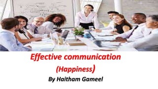 Effective communication is the process of exchanging ideas, thoughts, opinions, knowledge, and data so that the message is received and understood clearly. It builds and maintains relationships, trust, understanding, and encourages innovation while reducing conflict. To be an effective communicator, messages should be complete, concise, considerate of the audience, clear, concrete, courteous, correct, and timely. Effective communication is important for managers, builds teams, and improves customer satisfaction.