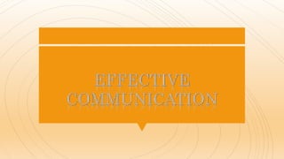 The document discusses effective communication, defining it as a two-way process that involves sending the right message to the right person, while considering the psychology and circumstances of the audience. It outlines the importance of using the 7 C's of effective communication: completeness, conciseness, consideration, clarity, concreteness, courtesy, and correctness. Additionally, it emphasizes how effective communication aids in understanding, resolving misunderstandings, and building trust in various relationships.