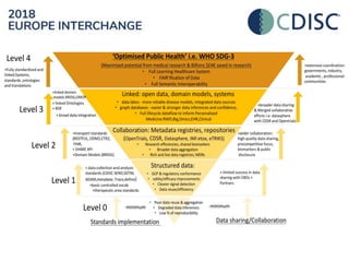 The document discusses the implementation of data standards to enhance medical research through effective data sharing, emphasizing the need for high-quality structured data to encourage collaboration and innovation. It highlights various challenges, such as inconsistent data standards, resource limitations, and the importance of sharing anonymized patient data for better healthcare outcomes. Key recommendations include improving data registries, merging siloed data efforts, and increasing investment in precompetitive knowledge sharing to achieve significant healthcare efficiencies.