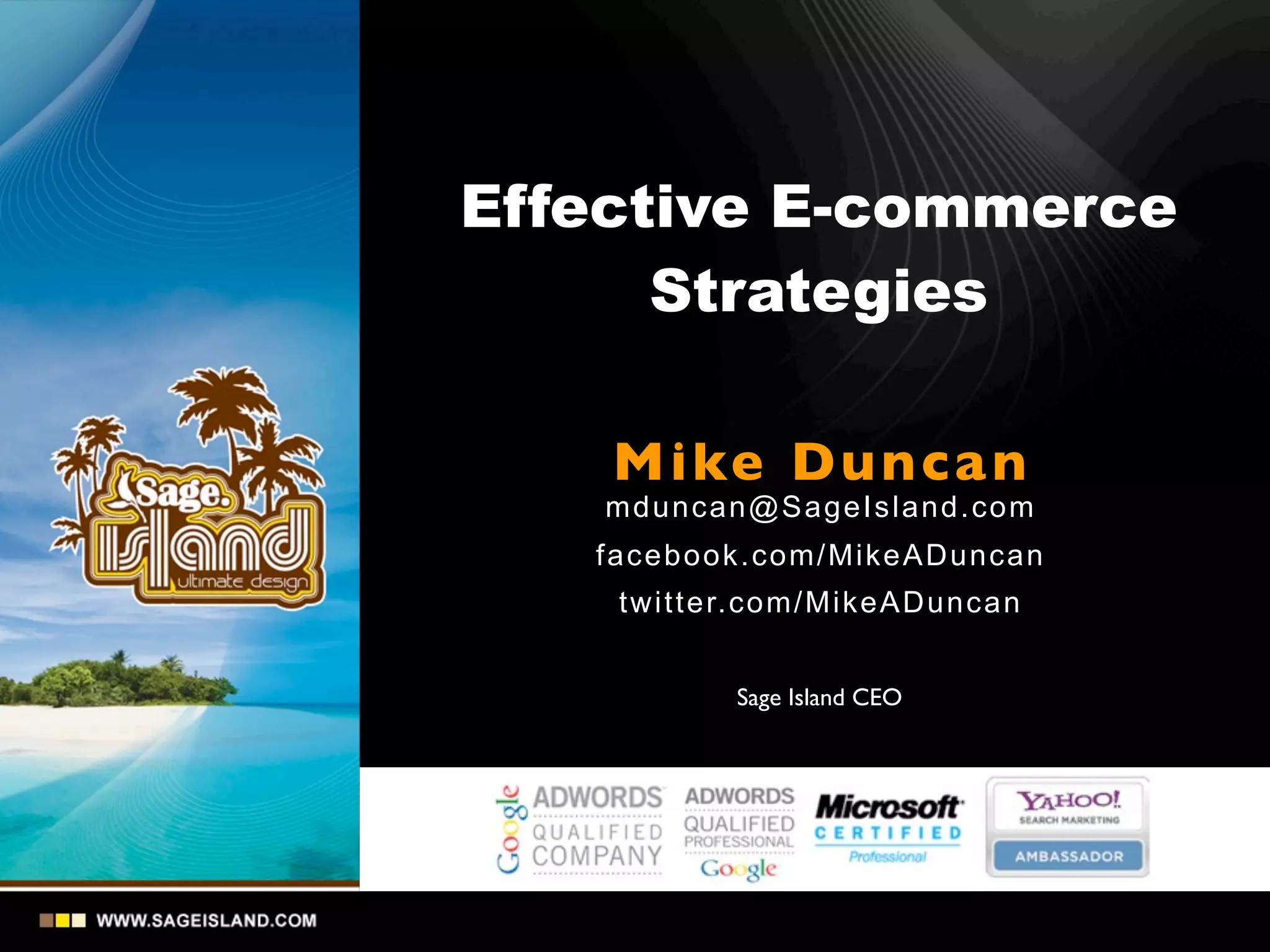 This document provides strategies and best practices for effective e-commerce, as presented by Mike Duncan of Sage Island. It discusses Amazon's formula for success, finding customers and driving traffic to stores through search engine optimization, paid search, and shopping networks. The document also covers e-commerce design trends like building loyalty, reviews, navigation, personalization, mobile, and tracking performance.