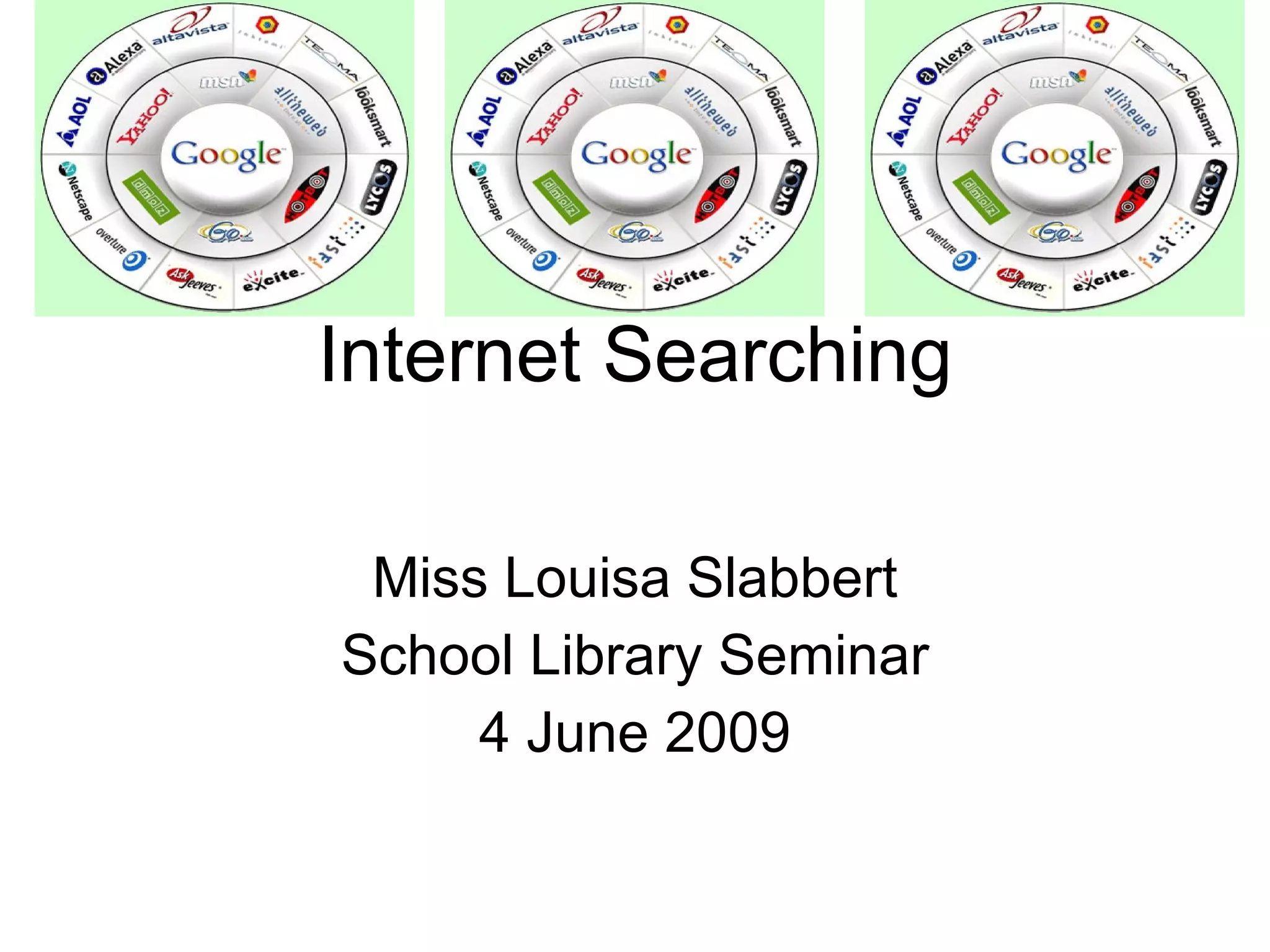 The document provides an overview of how to effectively search the internet. It discusses what the internet is, how it works, and the history and terminology associated with searching online. It then gives guidelines for developing successful search strategies, such as being specific, using keywords and phrases, trying different search engines and refining searches based on results. It emphasizes evaluating websites for credibility by examining aspects like the domain, author, date updated and external links.